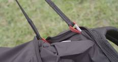PROGRESS 2のリザーブは背負って運ばれます。 これは、プロテクタの容量を取らず、操作性は劇的に改善されました。 リザーブの重量は肩にかかり、膝の裏に当たりません。 その結果、地上で動きやすさはが改善されました。 最適化された設計と、シンプルでわかりやすい調節機能。 セッティングはすべてフライト中に変更できます。