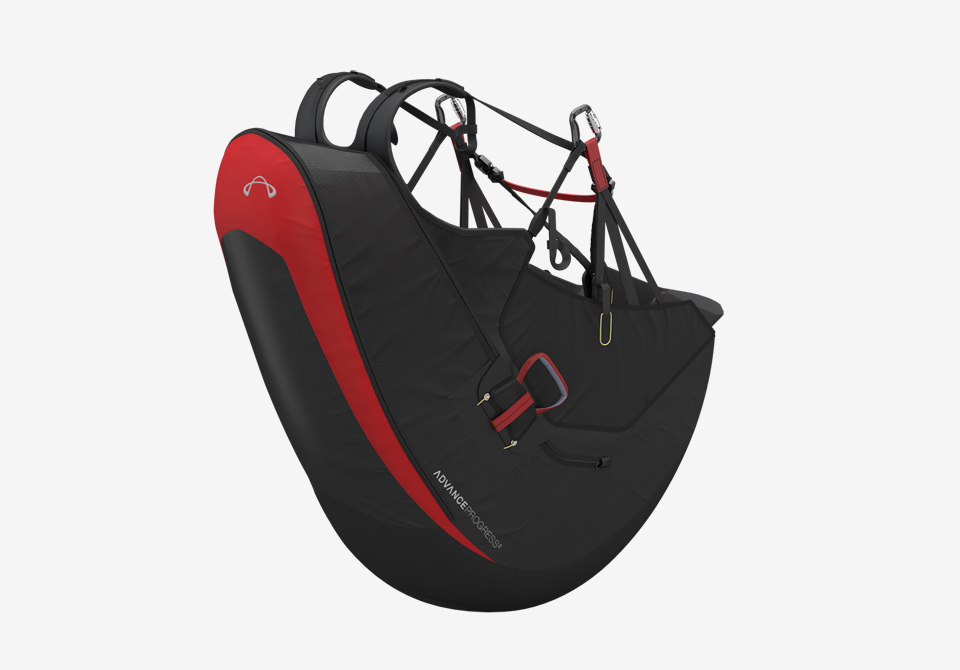 PROGRESS 2 はADVANCE独自の3D CADソフトを使用して開発しました。このソフトで、複雑なカーブの形状をした多くの部品の分析、処理、縮小を行いました。そのため、開発の一連の結果がダイレクトに活かされ、パイロットにとってアドバンテージになります。エンジニアの視点から、ハーネスは完璧な仕立てと計算された応力付加 により、性能が良くなります。これらにより、折り目のより少ないエレガントな形になりました。さらに、エアロダイナミックを改善しました(空気抵抗をより少なく)。個人の側面においては、精巧な設計により、エルゴノミク(人間工学的に)望ましい形で、さらに快適になりました。